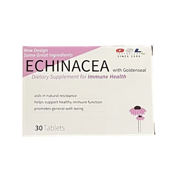 Dietary Supplement for Immune Heath Echinacea and Goldenseal have been traditionally used to support immune health. it is thought to be beneficial for fighting off infections, common cold, and flu Recommended Use: For adults, take two (2) tablets two (2) times daily, preteroy with meals Caution: This product can be a choking hazard. Keep out of reach of children. Not intended for use by perso ns under the age of 18. This product should not de lines or those mur dut are allerric to Composite flowers (daisy family). I you are pregnant nursing, taking any medications, or have any medical conditions, please consult your physician before use. Discontinue use and consult your Supplement Facts: kring sue, 2 toblet The statements presented on this package have not been evaluated by the FDA. This product is not intended to dlagnose, treat, cure, or orevem any onsease